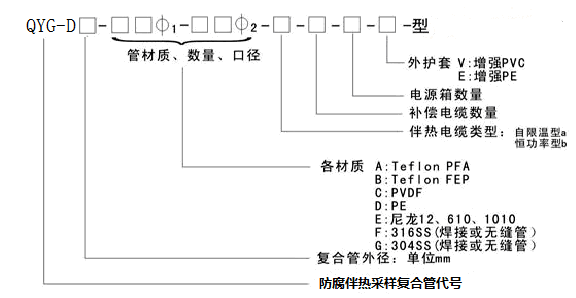 耐腐伴热采样复合管是环保监测系统中的重要部件,,,,它是由一组耐腐高性能树脂导管辅以恒功率伴热带以及补偿线缆组成内芯,,,,外加保温层,,,,最后敷以阻燃聚乙烯(PE)保护外套复合而成。。。。恒功率伴热带必须采用温控仪控制,,,,可以保证采样管内维持一定的温度,,,,从而尽可能保证采集样品与初始值保持一致,,最终确保环保监测系统连续、、正确地采集样气。。根据采集样气体的成份、、、、温度等实际情况,,,耐腐伴热采样复合管中采样导管可以选用不同的材质,如PFA(四氟乙烯与全氟烷基醚共聚物)、、、FEP(四氟乙烯和六氟丙烯共聚物)、、、、PVDF(聚偏二氟乙烯)、、PE(阻燃聚乙烯)、、、尼龙610等等,伴热带可以选用中、、、高温度伴热带,,,,,另外还可以根据用户要求添加补偿导线、、、电源线等 。。。产品使用寿命在5年以上。。